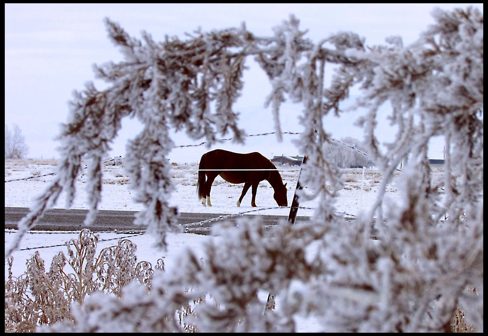 Horse in a snowy field in Utah December 2013