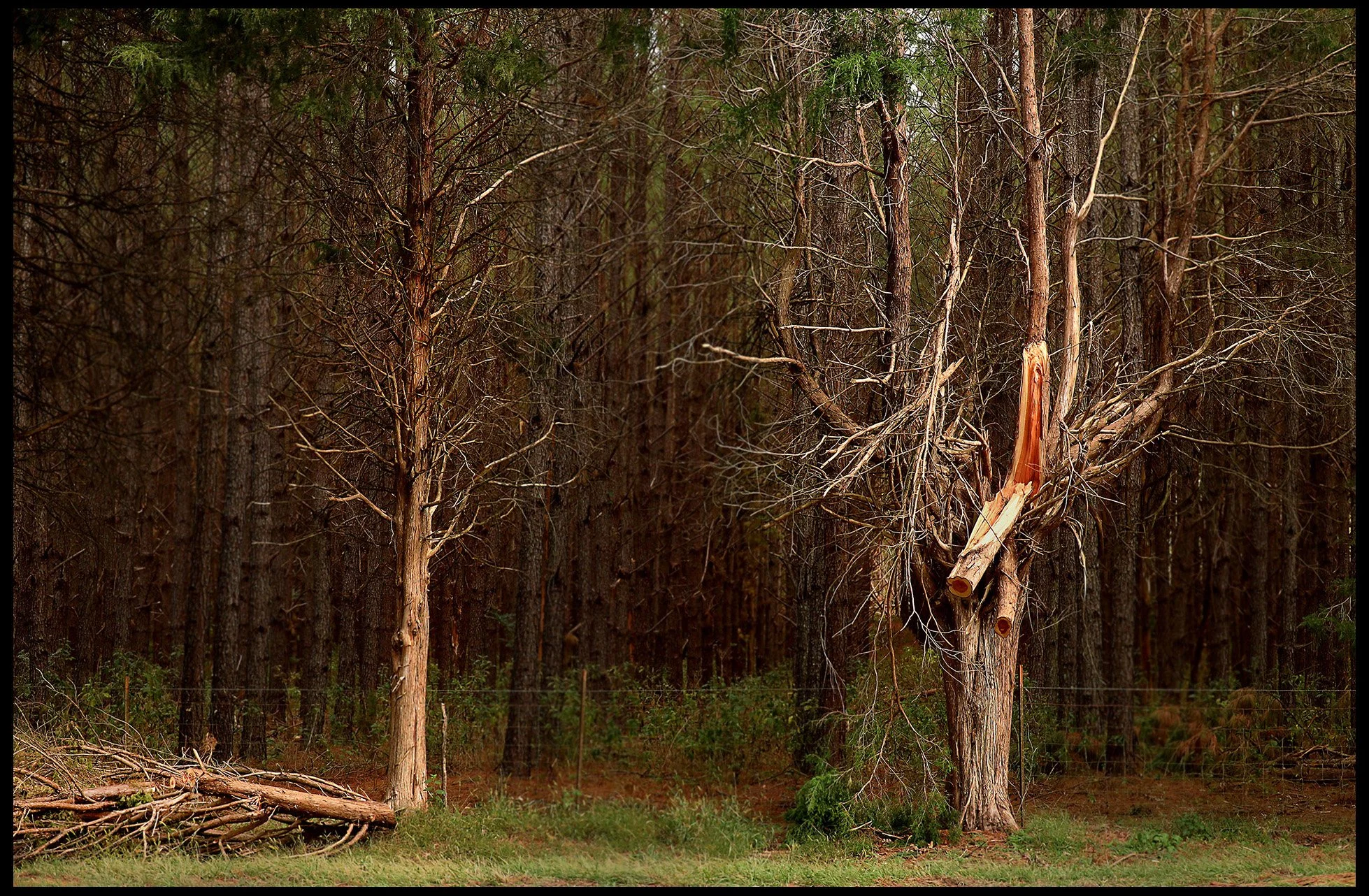 Right after Hurricane Helene came charging through the Southeast, and right over Aiken, SC, I started to look around and document the toll the storm took on the trees of the area. This project is a small look at the loss of thousands of trees throughout Aiken and the surrounding communities in South Carolina. Just as in all large-scale natural disasters, much of the impact is random. Trees that were healthy, strong and tall were delimbed or uprooted completely. Even as their neighboring trees were unaffected. Some neighborhoods lost whole swaths; while others lost only a few.